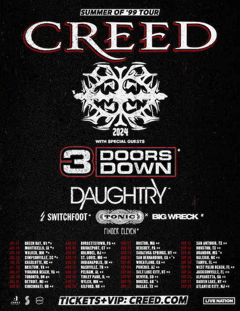 Creed, the multi-platinum, Grammy and American Music Award-winning rock band, is thrilled to announce their eagerly awaited 2024 Summer Of ‘99 Tour.