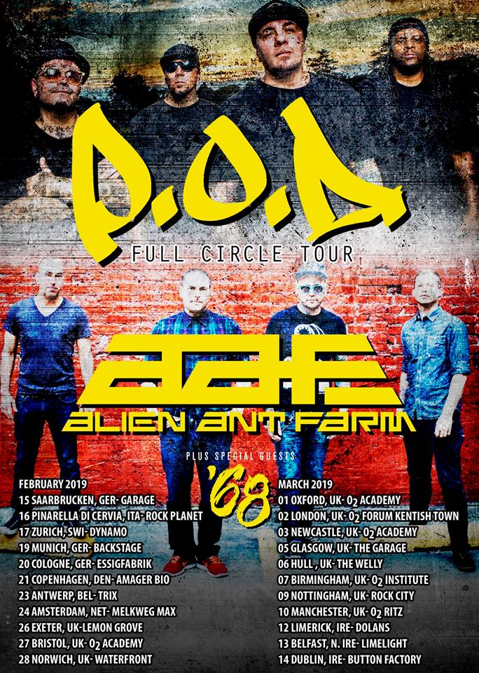 Over the span of two decades, P.O.D. has released ten studio albums, including the triple-platinum “Satellite.” They have seen chart success with more than a dozen Rock radio hits, including ‘Southtown,’ ‘Alive,’ ‘Youth of the Nation,’ and ‘Boom,’and most recently with their Active Rock hits ‘Higher,’ ‘Beautiful,’ and ‘Lost In Forever,’ which hit #1. The band has been nominated for three GRAMMY Awards, racked up four #1 music videos, and contributed songs to numerous major motion picture soundtracks.