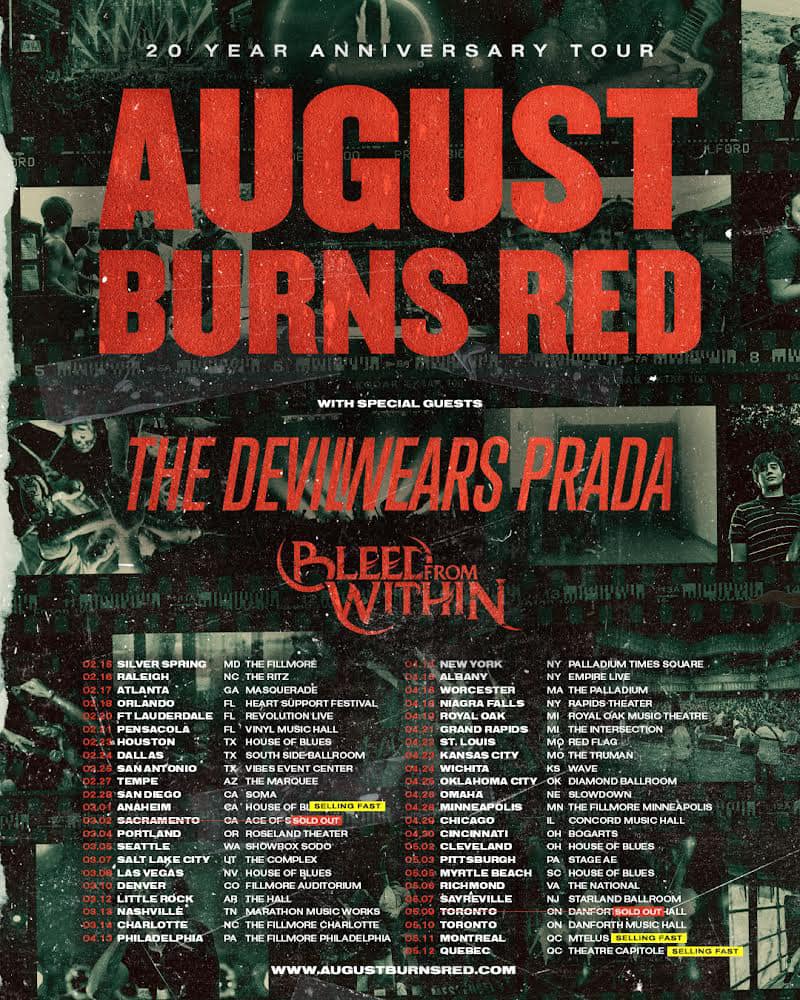 Support on the run will come from The Devil Wears Prada and Bleed From Within. The trek will mark the latter band’s first proper U.S. run. VIP tickets are available now via augustburnsred.com