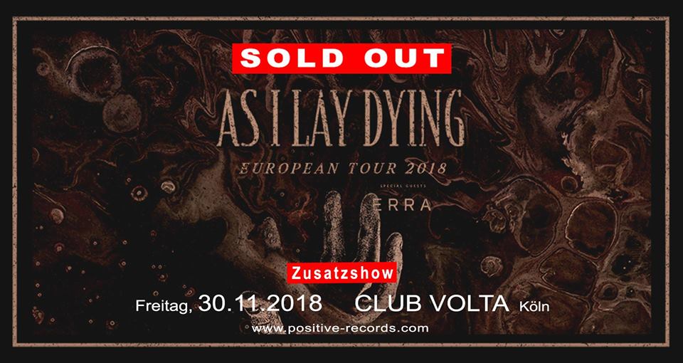 The reunited classic lineup of California metallers As I Lay Dying — Tim Lambesis on lead vocals, Jordan Mancino on drums, Phil Sgrosso on rhythm guitar and backing vocals, Nick Hipa on lead guitar and backing vocals, and Josh Gilbert on bass and clean vocals — are currently busy with their European tour, fan filmed footage of their sold out gig in Club Volta, Cologne, Germany (Nov. 30) can be seen below. (Thanks Molly)