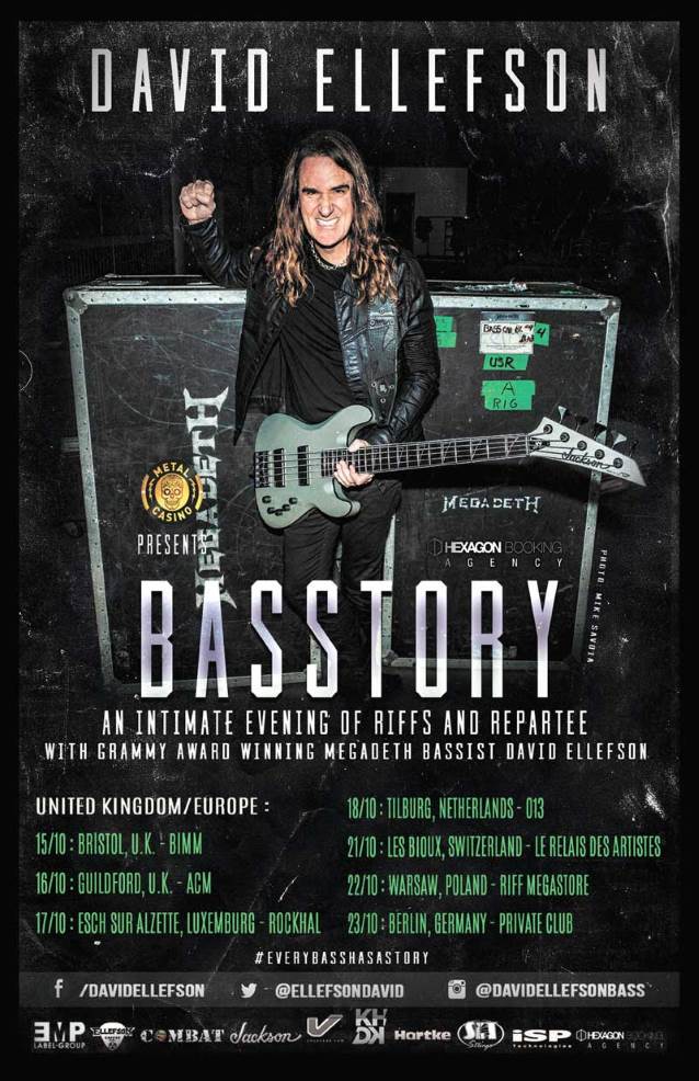 Grammy Award-winning Megadeth bassist, author, entrepreneur and metal icon David Ellefson, in association with Hexagon Booking, has announced a string of European dates to his “Basstory” tour, a series of limited and exclusive “Storytellers” dates, starting September 21 in Portland, Oregon.