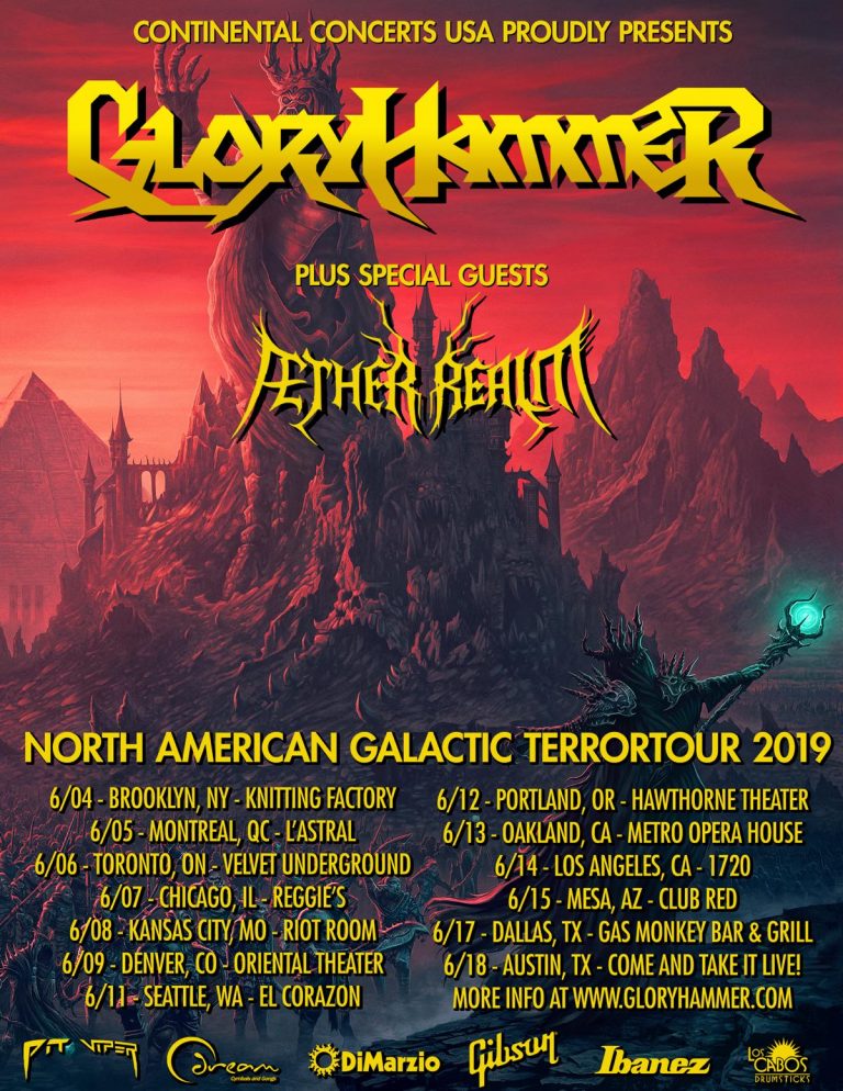 In conjunction with the release of Legends from Beyond the Galactic Terrorvortex, Gloryhammer will head out on a North American headline tour in late spring, featuring support from Aether Realm! The tour will kick off in Brooklyn, NY at the Knitting Factory on June 4, and will stop in several major cities, coming to an end on June 18 in Austin, TX at Come and Take it Live! See below for all confirmed tour dates.