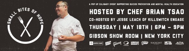 Chef Brian Tsao, known for his stint on Food Network‘s “Beat Bobby Flay” and “Chopped”, as well as his heavy metal persona on the web series “Taste Of Metal”, is hosting “Small Bites Of Hope”, a pop-up culinary event benefiting the non-profit organization Hope For The Day.