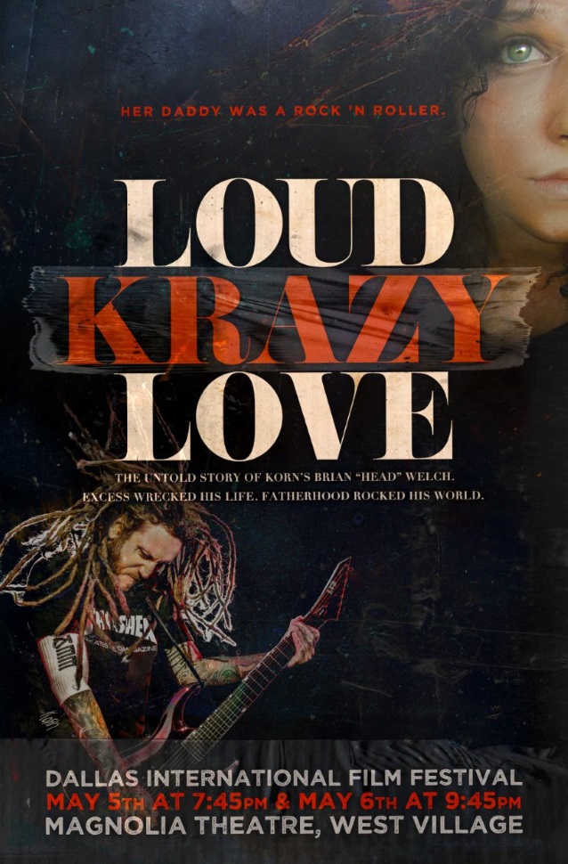 “A new trailer for “Loud Krazy Love”, an unconventional new documentary chronicling the chaotic and unexpectedly uplifting life story of Brian “Head” Welch, best known as guitarist and co-founder of Korn, can be seen below (courtesy of The Hollywood Reporter).The 86-minute film directed by first-time feature filmmakers Trey Hill and Scott Mayo will make its Texas premiere at the Dallas International Film Festival May 3-10 and its Southeast premiere during the Nashville Film Festival May 10-19, with multiple screenings occurring at each festival. Featuring exclusive access on tour and at home, as well as in-depth interviews with Brian, his family and his Korn bandmates, “Loud Krazy Love” subverts the standard sex, drugs and rock ‘n’ roll narrative to explore his identity as a father and the complicated relationship he shares with his daughter Jennea.”The intimate details of Brian and Jennea‘s life during the years he was absent from Korn are turbulent,” said Mayo. “‘Loud Krazy Love’ is really a backstage pass to heartache and triumph. You don’t have to be a Korn fan to empathize with Brian‘s decision to sacrifice all his success in an attempt to be a good father.