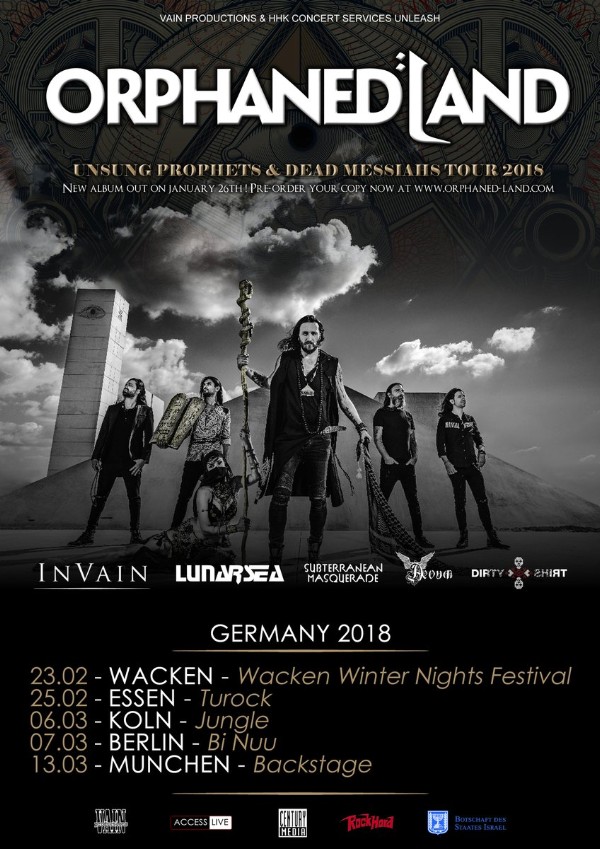 Oriental metal pioneers, Orphaned Land, will release their new studio album, “Unsung Prophets & Dead Messiahs” on January 26th via Century Media Records. To celebrate the release, the band will be touring Europe again in early 2018 – Now there are shows in Germany added to this tour, the trek kicks off on feb. 23rd. in Wacken (Germany). Dates and locations are listed below.