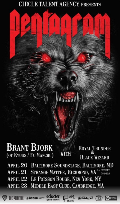 “Due to circumstances that are beyond anyone’s control, that are a direct result of Bobby Liebling‘s personal actions, he is unfortunately unable to appear alongside Pentagram for the spring string of East Coast concerts. The four dates affected are April 20th – Baltimore, MD, April 21st Richmond, VA, April 22nd New York City and April 23rd, Cambridge, MA.