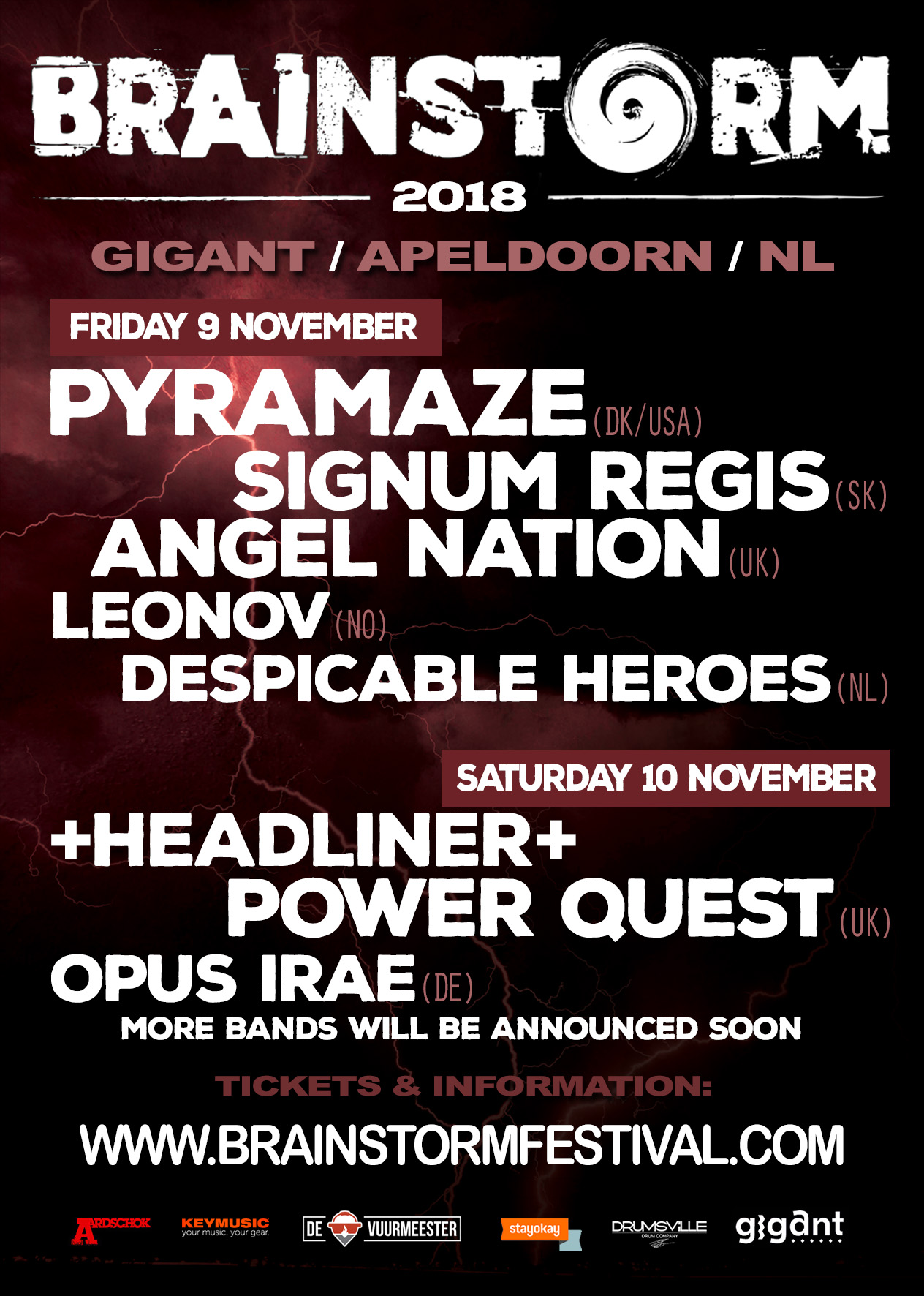 The programming of the 11th edition of the Brainstorm Festival is steadily taking shape. Power Quest (UK), Angel Nation (UK) and Despicable Heroes (NL) have been added to the line-up of the event that will take place on Friday 9 and Saturday 10 November 2018 in Gigant, Apeldoorn. The headliner of the festival will follow, as will many other bands.