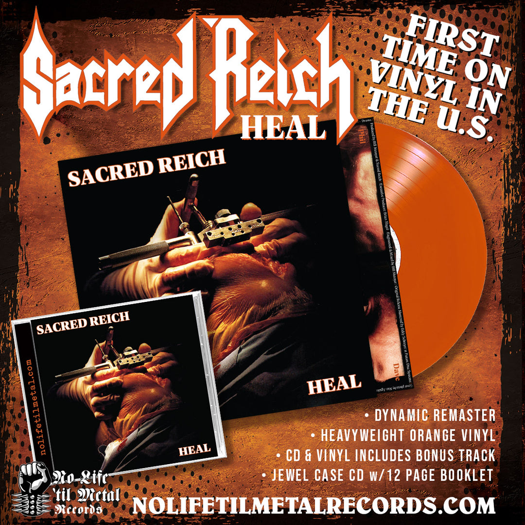 Pre orders are live now and the first 50 orders will receive an exclusive limited edition Sacred Reich ‘Heal’ button. (Limit 1 per order)