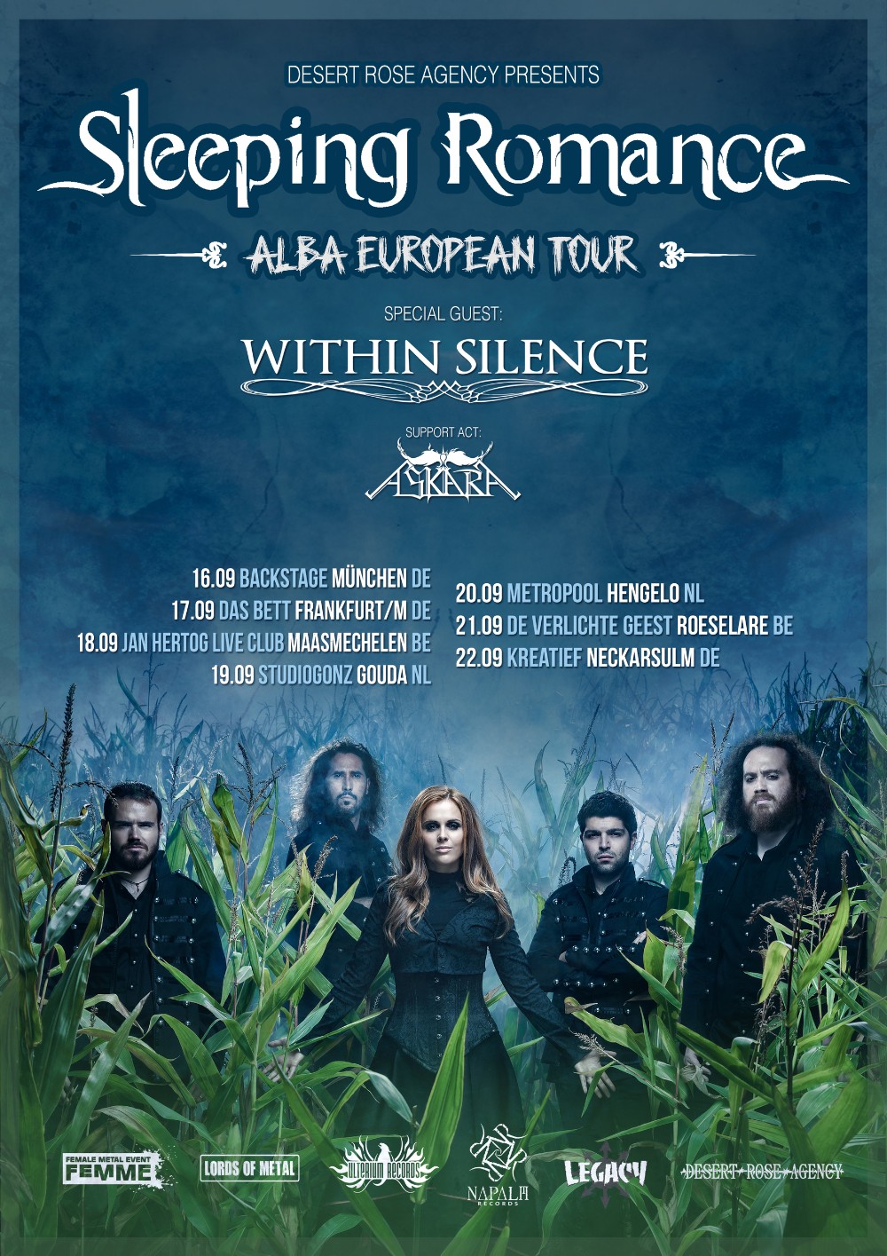 The Swiss progressive gothic metal band Askara comes along as a support act. In their own country the band is working hard, and the tour with Sleeping Romance and Within Silence is a great opportunity to seriously introduce themselves to a larger international audience.