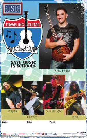 Said Marks: “When I learned about the USO and all the great work they do not only for active duty troops on the frontlines but also our wounded warriors and military families, I knew I had to do something to show troops how much they are appreciated and valued. I chose to do that by volunteering my time and granting them the wish of music. It is an privilege for me and the Traveling Guitar Foundation to be a part of such a terrific experience.”