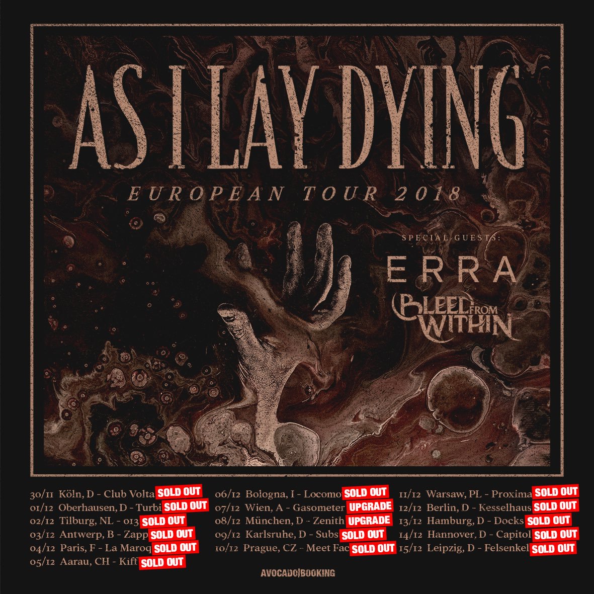The reunited classic lineup of California metallers As I Lay Dying — Tim Lambesis on lead vocals, Jordan Mancino on drums, Phil Sgrosso on rhythm guitar and backing vocals, Nick Hipa on lead guitar and backing vocals, and Josh Gilbert on bass and clean vocals — have recently completed their European tour 2018, fan filmed footage of their show in Club Zenith, Munich, Germany (Dec. 8th.) can be seen below.