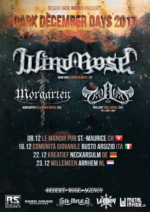Wind Rose hails from Italy and plays folk/power metal band (their sound is also described as dwarven metal – And indeed the dwarfs of The Hobbit are a great inspiration for Wind Rose. Having toured with bands like Wintersun, Eluveitie and Ensiferum.